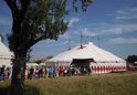 Wir stehen auf einer wunderschönen Wiese, die durch den starken Dauerregen der letzten zwei Tage unter Wasser steht, sodass wir nicht aufbauen können und die ersten beiden Vorstellungen l...